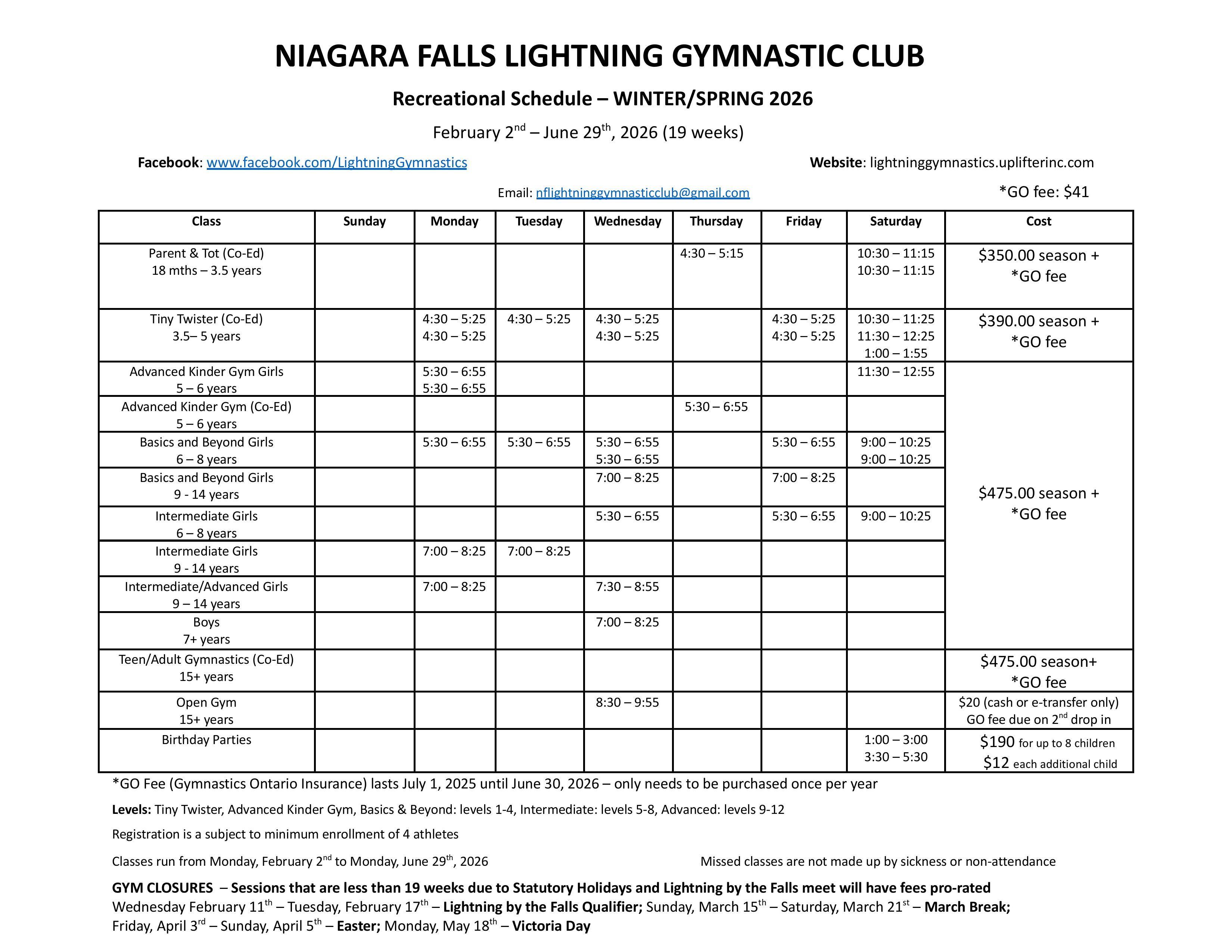 Winter / Spring session runs from February 2nd until June 29th. Summer Camps 2026 Registration begins Monday April 6th!